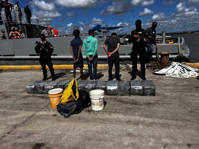 En una intensa persecución por aire, mar y tierra, las autoridades incautaron 300 paquetes de cocaína SPM, a dos dominicanos y un colombiano