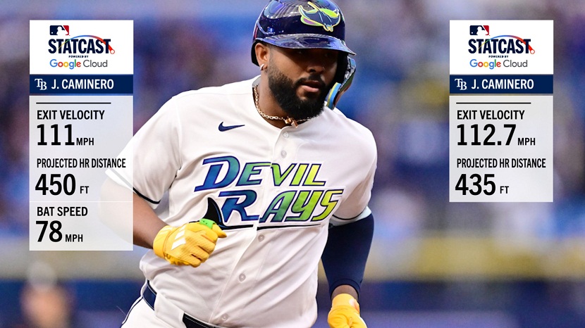 El séptimo jonrón de la temporada de Caminero recorrió una distancia proyectada de 450 pies, según Statcast. Fue el más largo de su joven carrera, el más largo en el Trop desde uno de 452 pies de Josh Lowe el 24 de agosto de 2023, y el más largo por un bateador de Rays desde que Brandon Lowe conectó uno de 458 pies ante los Atléticos el agosto pasado.