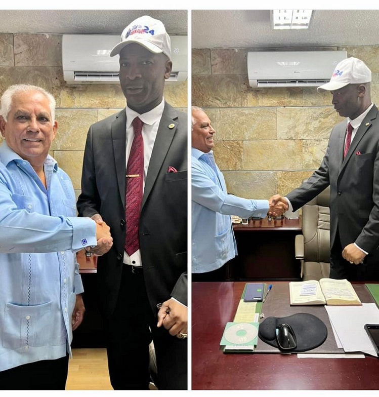 El presidente de Movimiento político Lo Que Diga Abinader 2024-2028, Nelson Cabral recibió en su despacho al ex-diplomático de Haití en la República Dominicana, Lic. Jean Claude Desrosier, quien actualmente es miembro de la misión diplomática de ese país vecino.