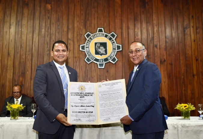 Moca, Espaillat, 31 de mayo, 2022.- La Asociación para el Desarrollo de la Provincia Espaillat (Adepe), reconoció este lunes al Ing. Rafael Santos Pérez por sus grandes aportes, buen manejo y desempeño como parte de su directiva en el marco de la celebración de su 45ta. Asamblea General Ordinaria.
